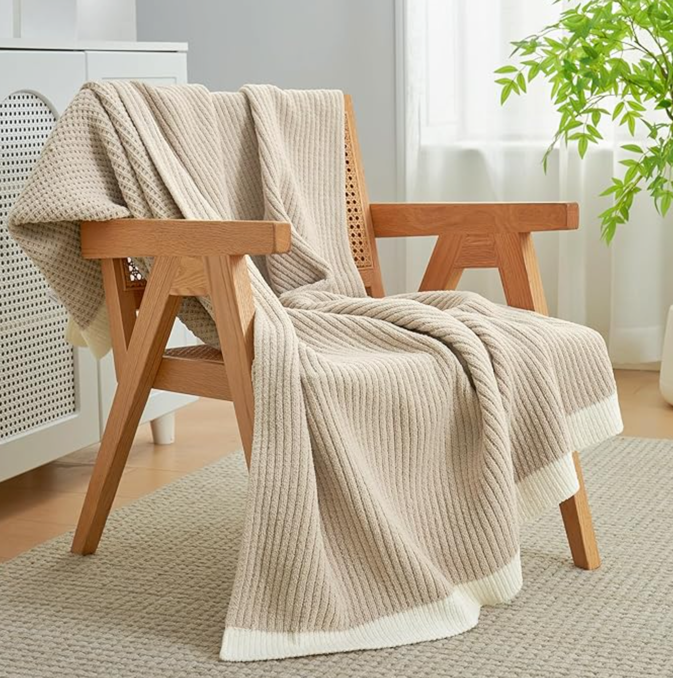 - Reversible Design: This crafted knit throw blanket features a dual-sided design—one side with a classic cozy waffle knit and the other with stylish, knit elegant stripes ribbed. Perfect for switching up your decor effortlessly. Stand out with our throw blanket's contrast edge design, adding a modern and fashionable touch to your home decor.