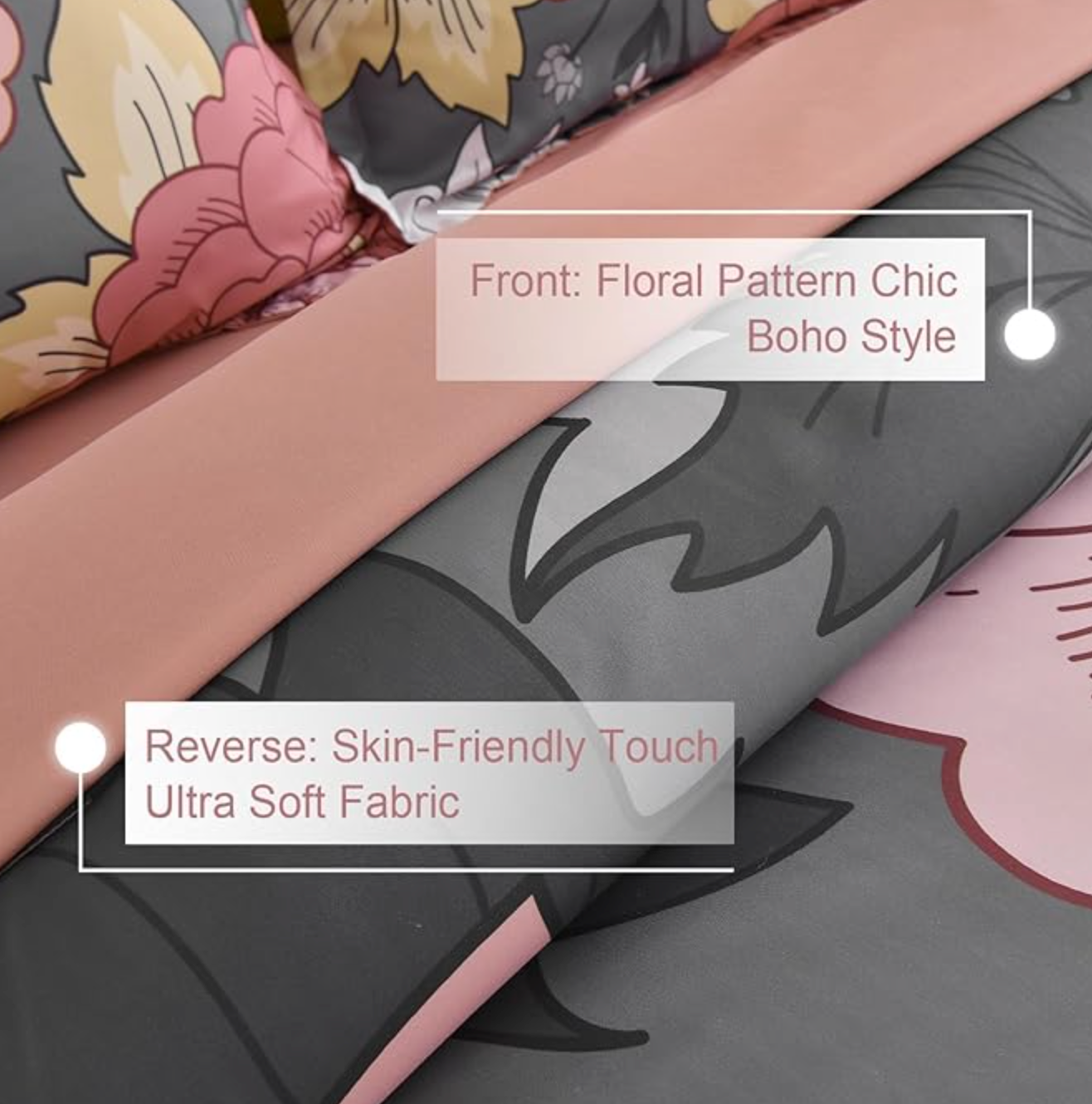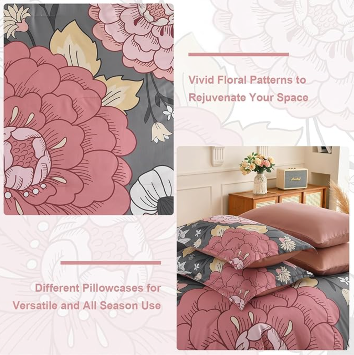 - Comfortable Fabric: The floral comforter set includes a lightweight comforter crafted from soft, breathable brushed microfiber and filled with a down alternative material, offering a cozy and lofty feel throughout the night.