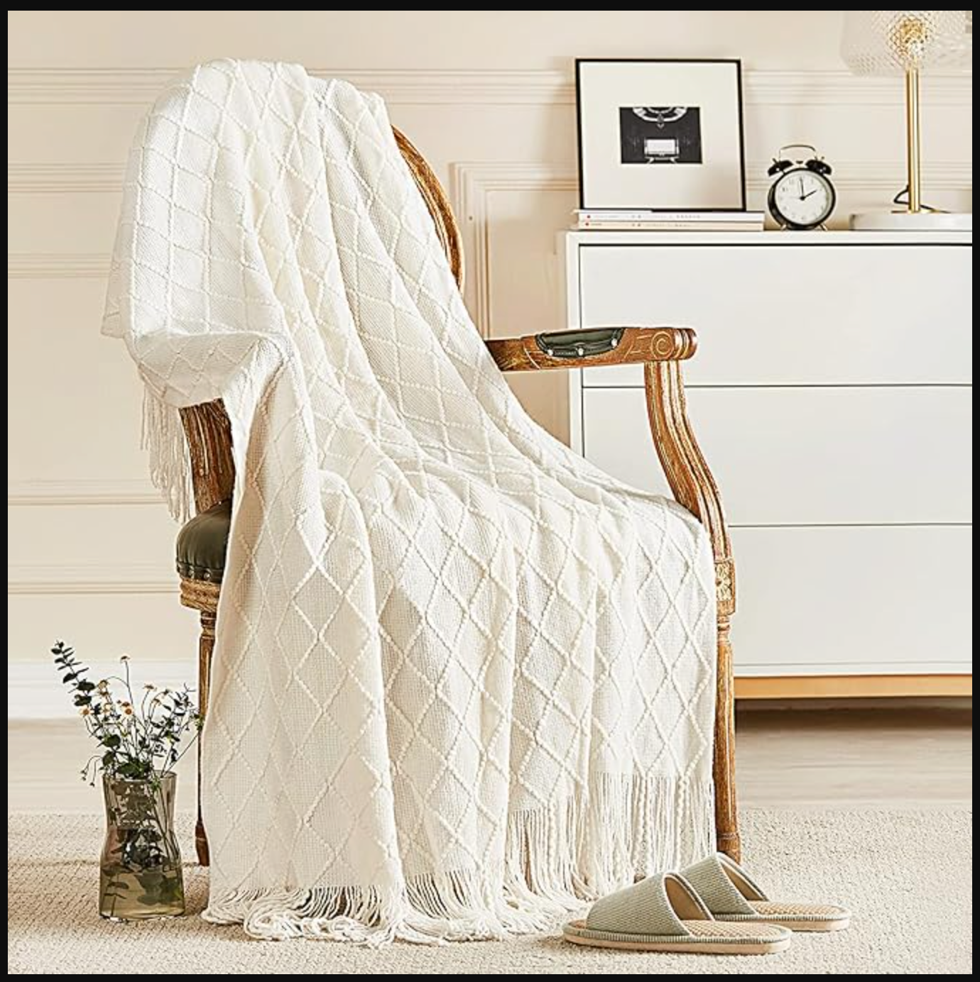 - 【GIFT IDEAS】: Special knitted diamond patterns add a unique accent to your room and people draping it as a shawl. Very suitable for tasteful homeowners. Throw blanket for women, classic but not too tacky as a housewarming gift. Tips: Due to different lighting, display settings, or resolutions, the difference in color happens. We are dying to show the color. To do so, one of the images shows the color difference in different lighting. Hope these instructions would help you to buy a throw.